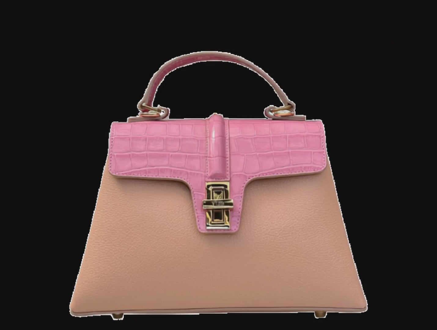 Handcrafted in Italy from soft blush leather with a pink croco-textured flap, the Dubai Bag captures the romance of desert sunsets and modern opulence.